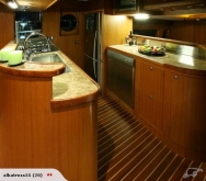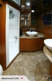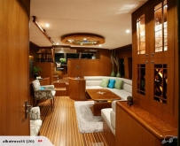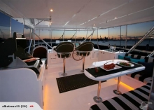 The entertainers salon opens out to the cockpit, the chefs galley is well equipped and there are two 7 seat dinettes. Upstairs the moulded air conditioned flybridge opens completely for all weather comfort. Interior accommodation also includes a huge master cabin with 6 windows both sides and marble ensuite, 3 Guest cabins with 2 heads plus aft single cabin for crew and with cockpit accessed day head for visitors.