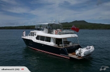 This lovely 65ft Pilothouse motor launch is available with charter income, Auckland Viaduct Harbour base (for approved purchaser), only 6 years old and with classic lines. Powered with twin 770hp twin diesel engines makes this vessel ideal for Pacific Island cruising range. Normal cruising speed 16-21 kts (25 kts max.) or economical long range cruising at 8 kts.
