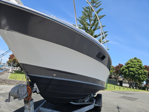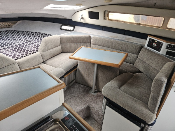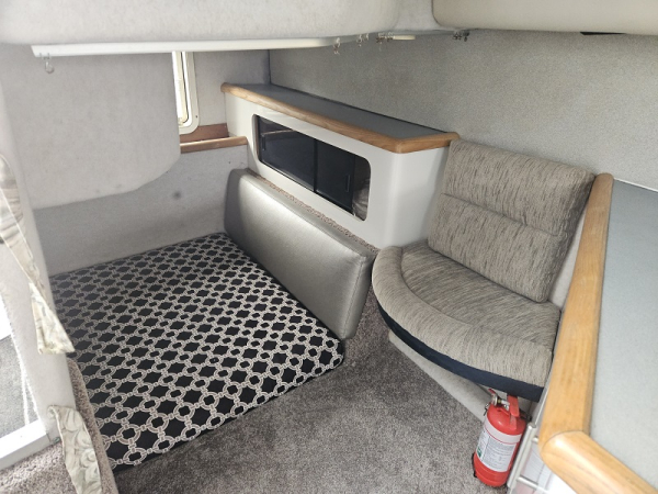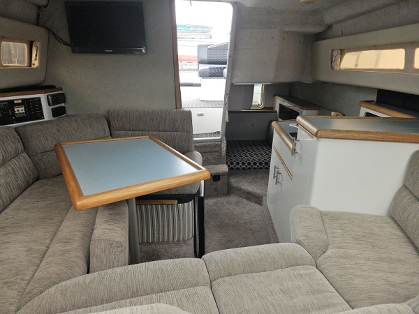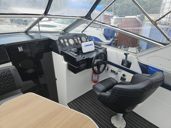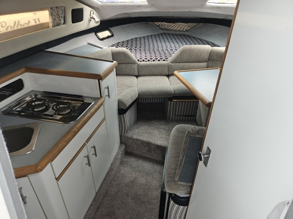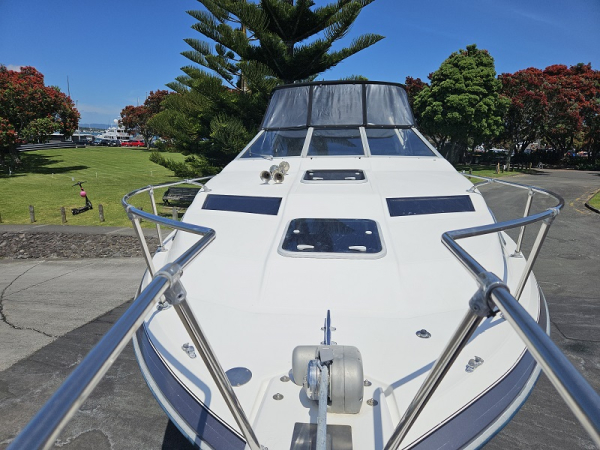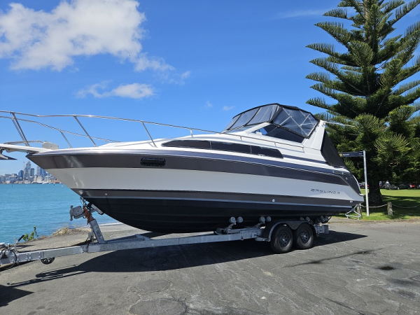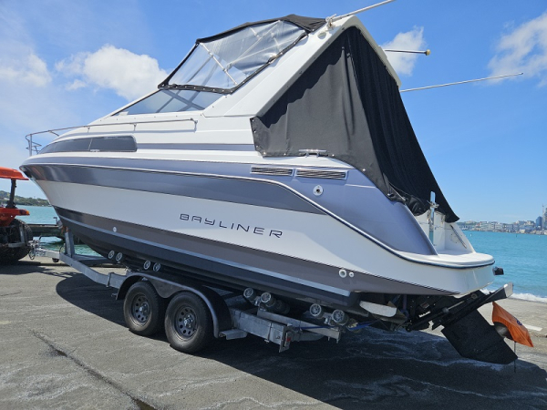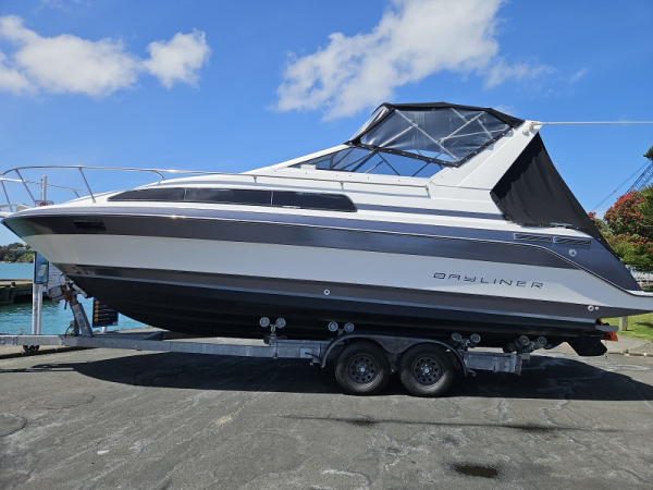 Very tidy 1992 Bayliner 28ft weekender, 220 hp diesel 4.2 ltr 6 cylinder turbo, fully serviced, 297 hrs, cruises 17 knots, max 24 knots, approx 45 ltrs/hour, full instrumentation , Lowrance elite 9 gps, vhf, blue tooth stereo, led lights, Fusion tv/dvd, diesel heater, shore power, underwater lights, electric capstan, separate electric flush toilet/shower with holding tank, interior and cockpit tastefully refurbished, sleeps 4, galley with sink ( hot/cold water), 2 burner stove, fridge with ice box. New full enclosure overnight canopy with clear sides and backdrop. Comes on tandem multi roller disc braked trailer with new disc brakes/axles/bearings/winch/led lights. very tidy example.