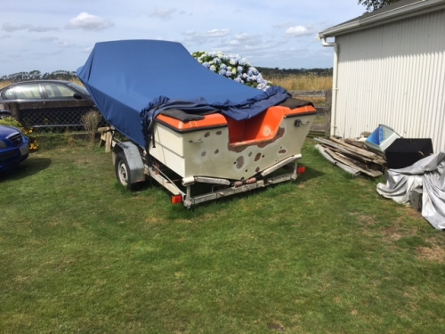 This boat is needing some gel coat work (gel coat supplied) to bring it back to its former condition comes with lifejackets, VHF, new fish finder, anchor new rope, swivel seats, tote tanks, bilge pump, trailer is reg and is original with boat in great non rusty condition. This boat is solid and is an easy fix for the right person. 1993 115 HP V4 Evinrude cosmetically refurbished, will need to be serviced as has been sitting for a number of years, have previous owners receipts for work done. Compression for this motor is sitting at 126 psi even. Stephen