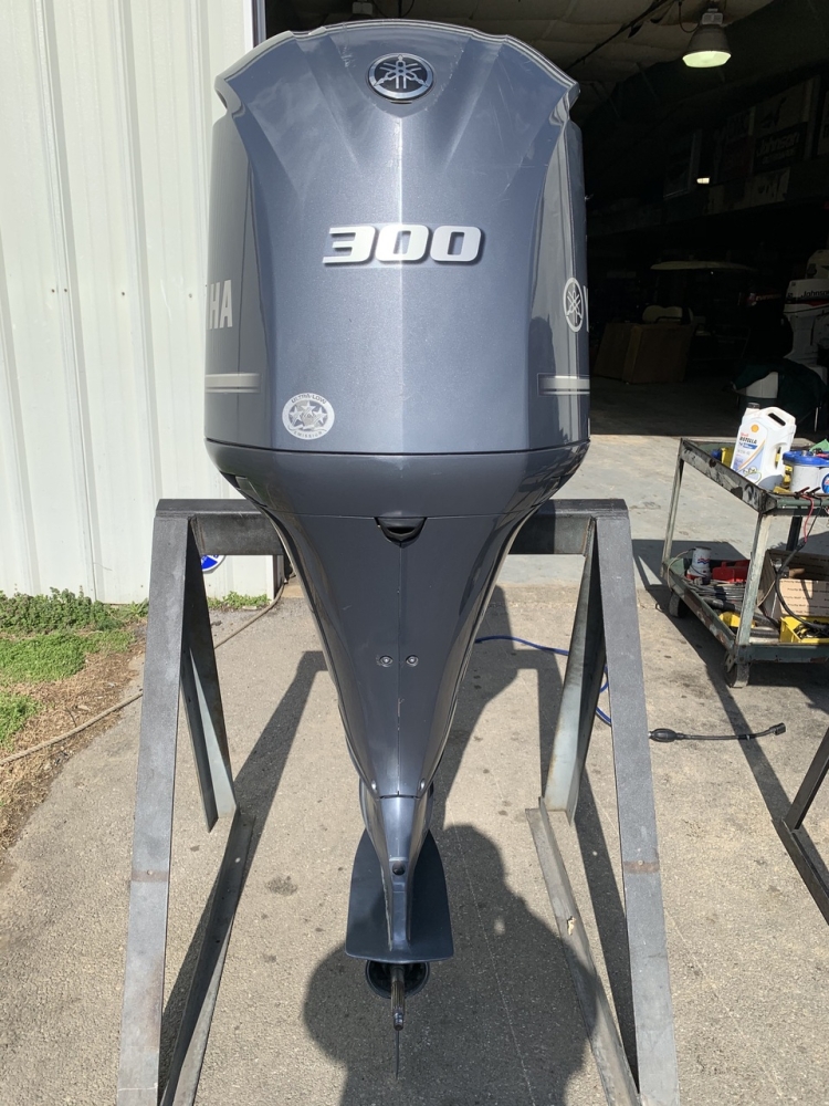 Clean Used 2018 Yamaha 300 HP V6 EFI 4 Stroke 25" (Extra Long Shaft) Outboard Motor. Model number: F300XCA. Serial number: 6CA-X-1022026. Weight - 562 lbs. 135-145 psi compression on all 6 cylinders. Standard (right hand) rotation. Freshwater use only. Motor is in great shape, but has some damage to the upper cowling (see photos). Computer has 1138 hours logged, but 800 of those hours are under 1000 rpm. Includes binnacle style DEC control set with harness and 2 digital gauges (see photos). Electric Start. Power Tilt/Trim.Jason